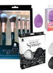 Beauty Essentials Bundle: Facial Makeup Blender Sponge + Natural Facial Konjac Sponge Duo Set(3 pack) + 5 Pcs Studio Makeup Brush Set (Black)