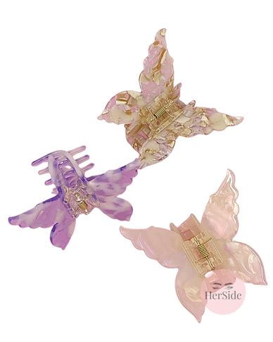 Bring a touch of whimsy to your hairstyle with this acrylic butterfly hair clip, featuring delicate detailing around the wings. Perfect for half-up styles or securing more hair with ease.