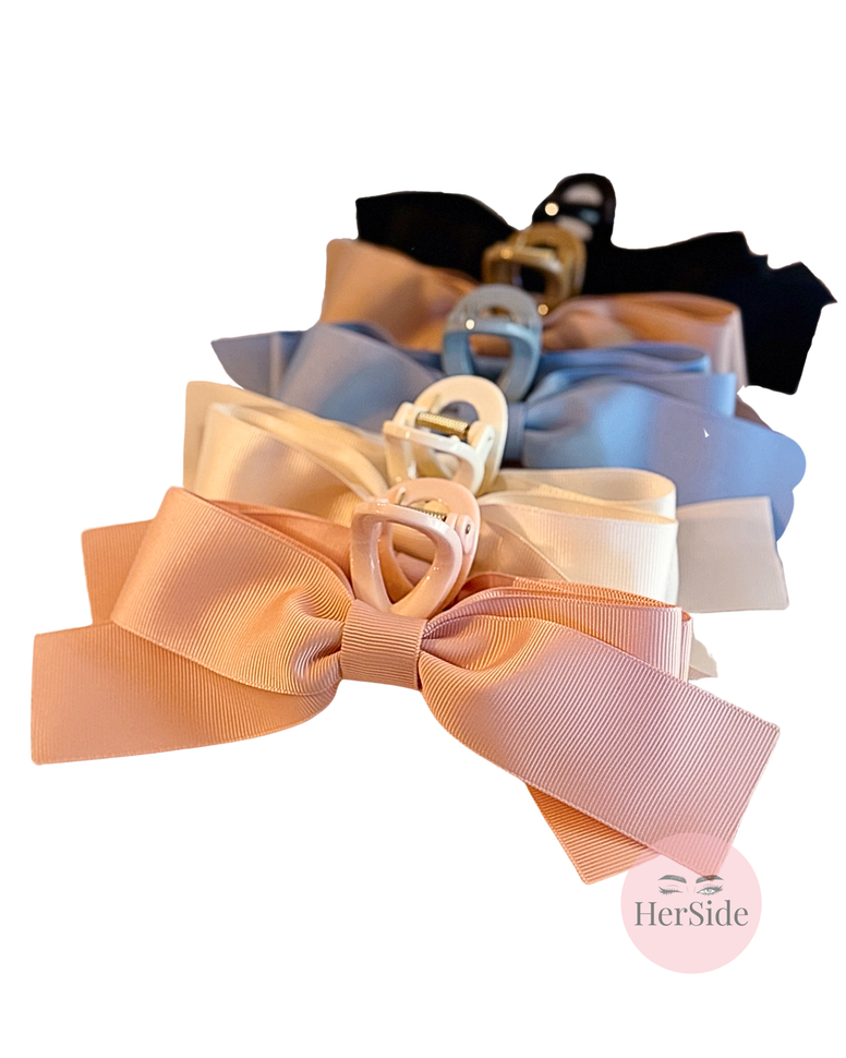 Adorned with sleek grosgrain bows on both sides, this hair clip brings a refined, feminine touch to any hairstyle. Its large capacity effortlessly holds hair in place, combining functionality with charm.